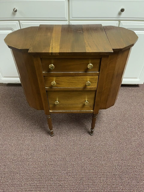 Antique Martha Washington Walnut 3 Drawer Spool Sewing Cabinet Side Table Stand At 1stdibs