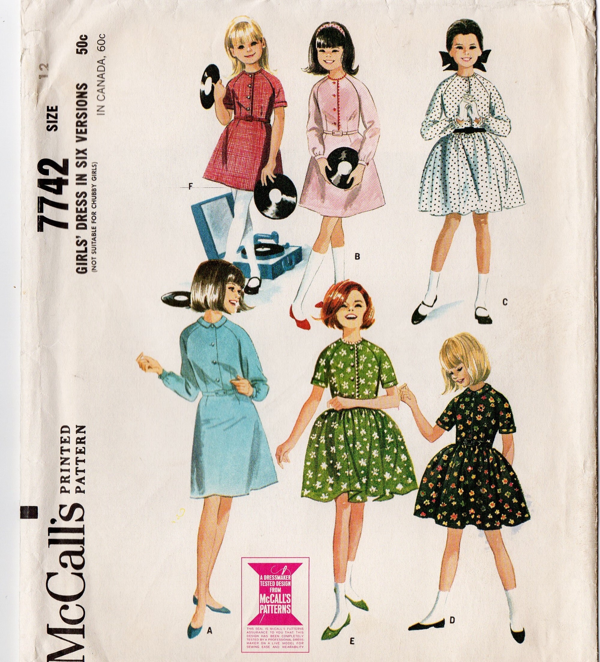 Mccall S 7742 Girls Dress 6 Versions 60s Vintage Sewing Etsy
